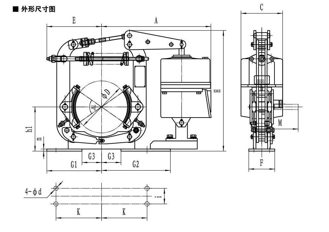 ▲ 常閉式設(shè)計(jì),(斷電)彈簧制動(dòng),(通電)推動(dòng)器釋放。